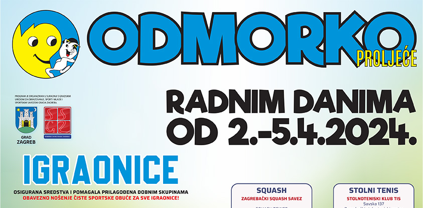 Školski sportski savez Grada Zagreba tijekom proljetnog odmora učenika od 2. do 5. travnja 2024. godine organizira program besplatnih sportskih aktivnosti za učenike osnovnih i srednjih škola.